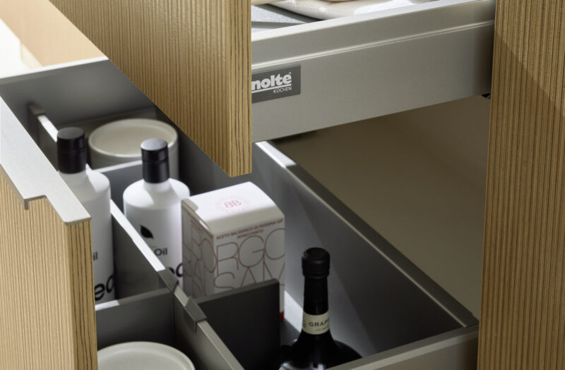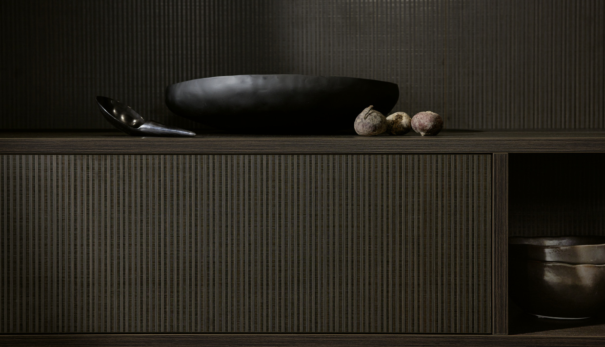 Featuring two natural wood tones, the fluted wood décor in Artline exudes luxury and provides a seamless integration with classic colours such as Magnolia Soft Matte, for a minimalist, sophisticated aesthetic.