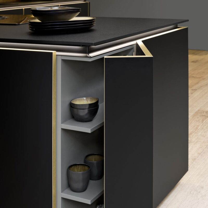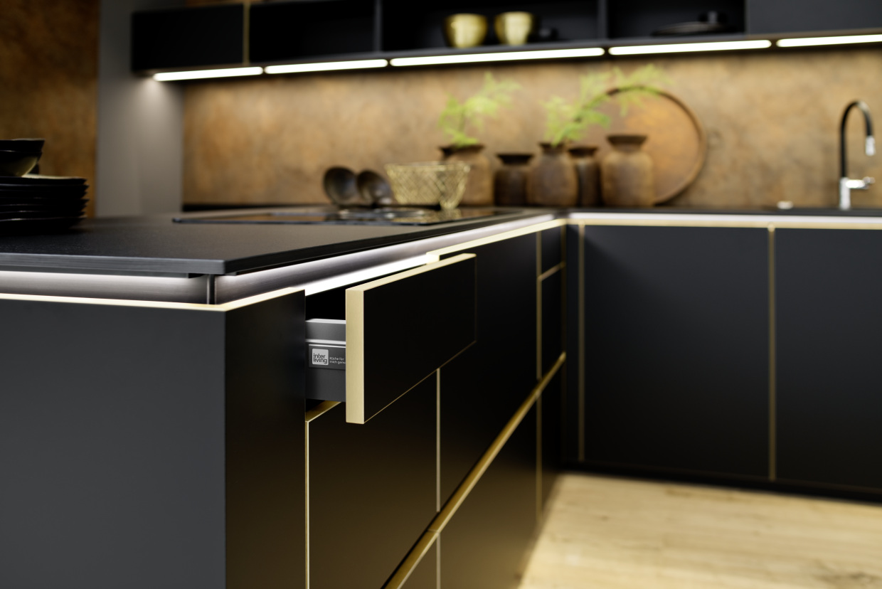 Known for its stylish stainless steel, oak or brass-look edges, each kitchen front in this range is a masterpiece of design, offering a refined aesthetic that is both captivating and functional.