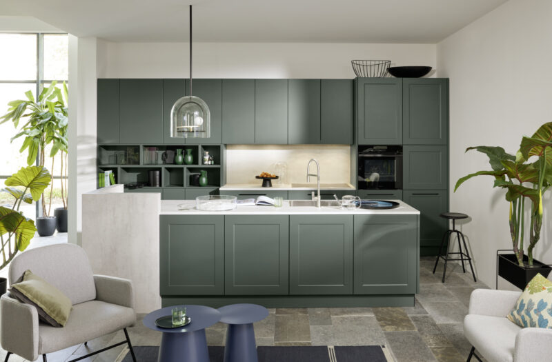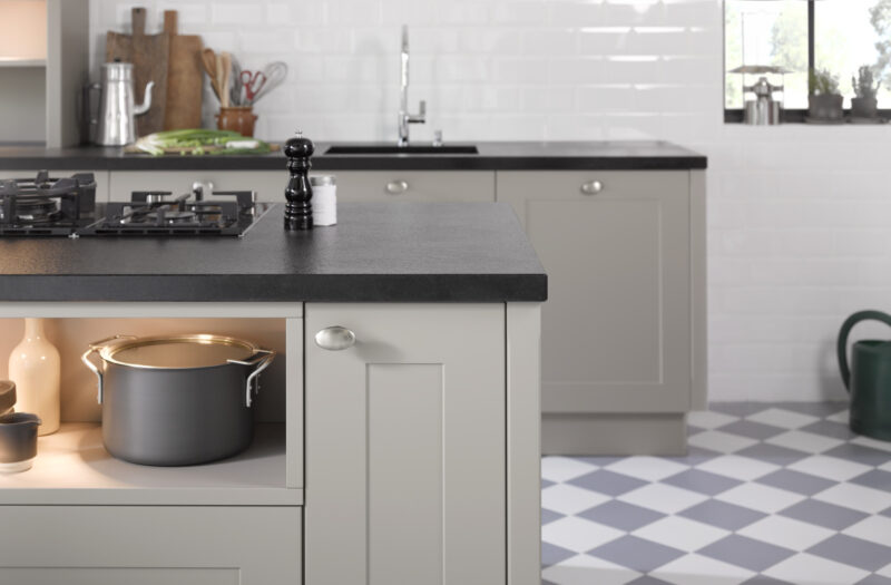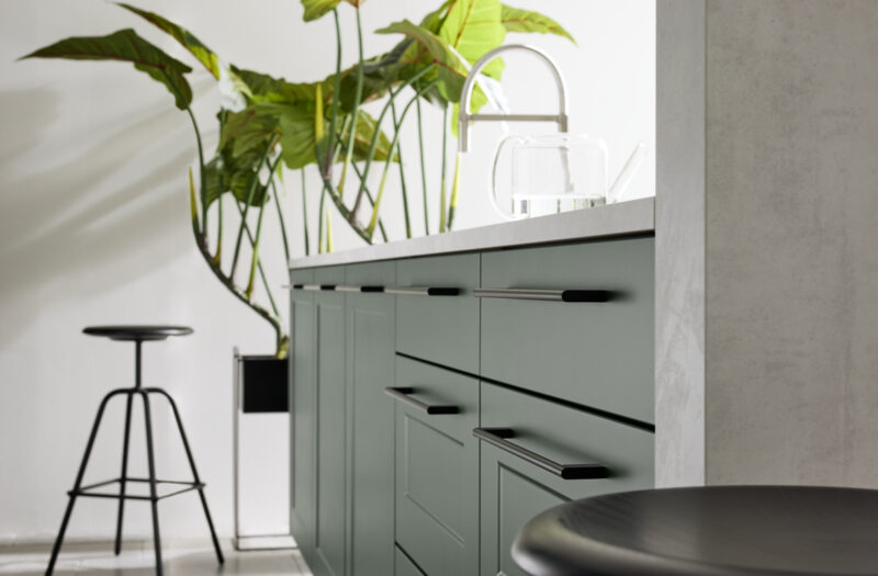 Frame Lack gives you a huge range of options to personalise your kitchen. The style works well on its own or can be combined with different fronts in the same colour, or with other shades. Particularly popular right now are two-colour schemes with a neutral base and wall cabinets teamed with a kitchen island in a different hue. The range is available with or without handles, but for a contemporary touch we’d suggest our 352 handle.