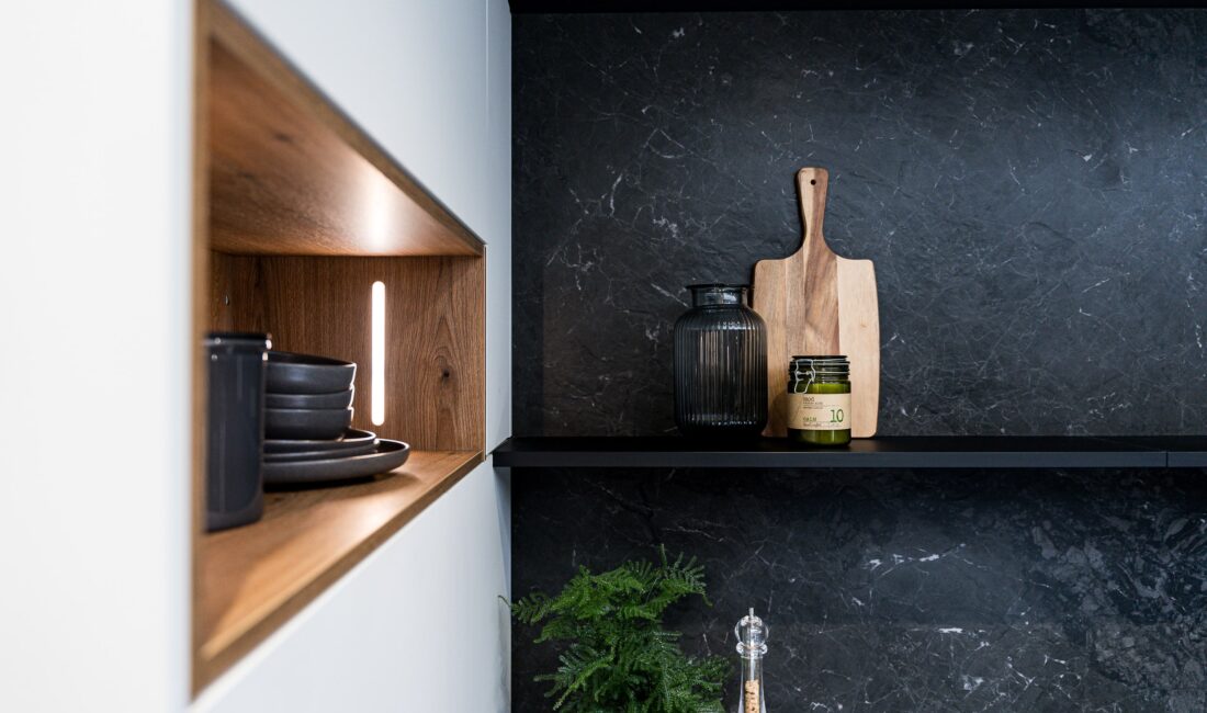 Inspired by Italian design, neoLODGE’s grooved veneer fronts and intelligent details – like side-fitted ovens or display units in manganese bronze – offer the ultimate in ergonomic elegance. Combined with MatrixArt and MatrixZero options, it creates a kitchen defined by sleek lines and rich colours that catch the light beautifully.